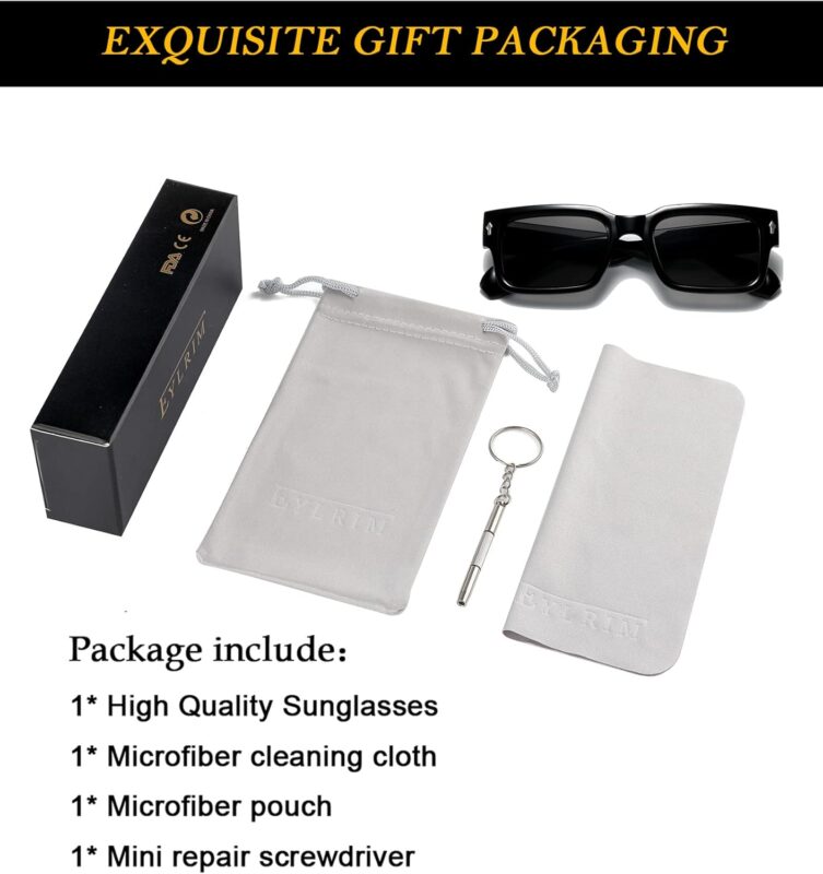 EYLRIM Square Frame Sunglasses for Women Men Trendy Chunky Rectangle Sun Glasses Black Shades UV400 Protection