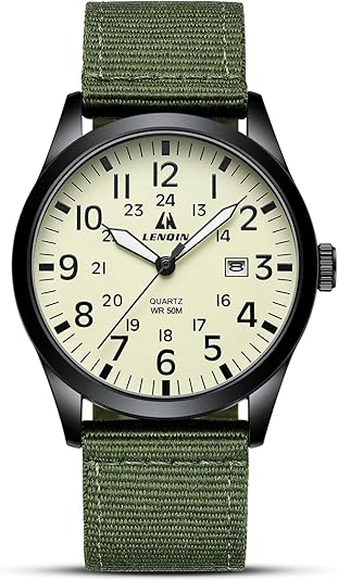 LN LENQIN Mens Watches Unisex Military Sport Nylon Strap Stylish Luminous Fashion Analog Quartz Watch for Men Waterproof Army Tactical Casual Wristwatch