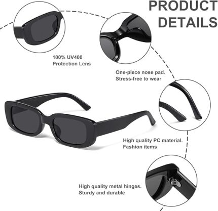 JASPIN Rectangle Sunglasses for Women Men Trendy Y2k Retro 90s Sun Glasses UV400 Protection Cool Square Frame